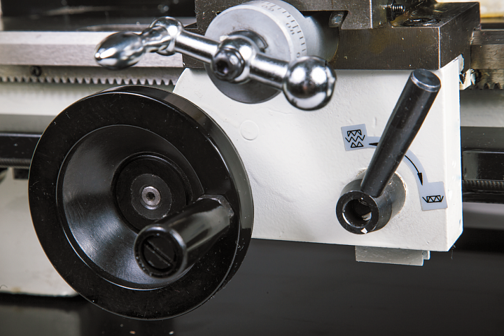 Станок справится с обработкой заготовки диаметром до 180 мм над станиной и 110 мм над суппортом, расстояние между центрами составляет 350 мм. К данной модели станка не придется докупать индикатор частоты вращения шпинделя, индикатор уже смонтирован в крышку передней бабки. Чтобы снизить стоимость BD-7 и снизить шум при его работе, инженеры JET применили оригинальное техническое решение: шестерни станка выполнены из так называемой «пластиковой стали». Этот материал называется POM, он не уступает стали по прочности, но существенно дешевле и более неприхотлив в эксплуатации.