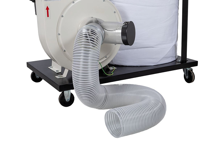 Сравнительно лёгкая и мобильная (в пределах мастерской) вытяжная установка Jet DC-1200M с увеличенным объемом пылесборника; оптимальна для использования совместно со станками, производящими много крупного мусора (строгальные, фрезерные, циркулярные и пр.). Сбор отходов производится в пластиковый мешок, закрепленный легкосъёмным хомутом с замком на защёлке, фильтрация отходящего воздуха – мешком из плотной ткани с размером пор 30 мкм.