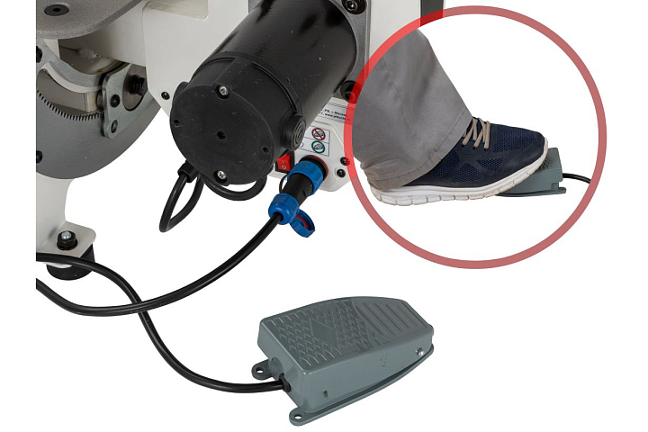 Абсолютно новая опция JET для новых моделей лобзиковых станков. Данный переключатель создан специально для лобзиковых станков JET. Полностью готов к работе. В станке все подготовлено для его установки. Воткнули в разъем и пользуйтесь. Раньше в моделях JET такой опции не существовало. Теперь есть. Удобно, так же как в швейной машинке или в автомобиле. Руки держат материал, а ногой запускаем и останавливаем станок. Для лобзикового станка такая опция крайне важна. Ведь здесь обе руки необходимы для удержания заготовки.